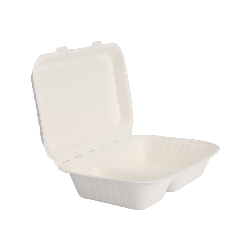 首頁 / 產品 / 甘蔗渣食品容器 / 可循環利用兩格 34 盎司翻蓋