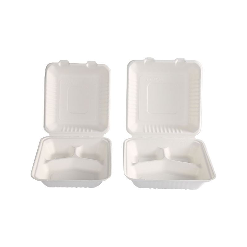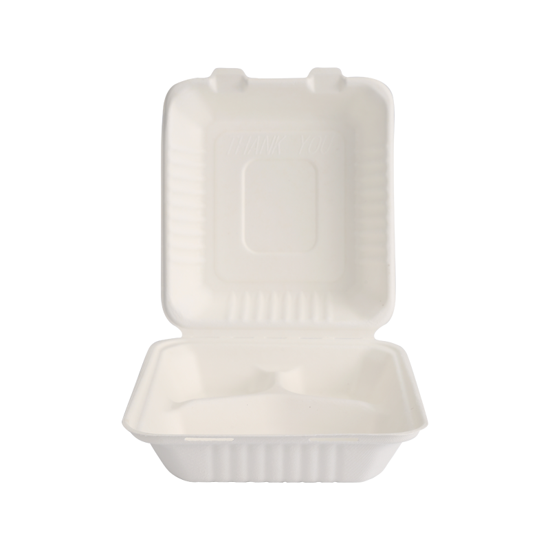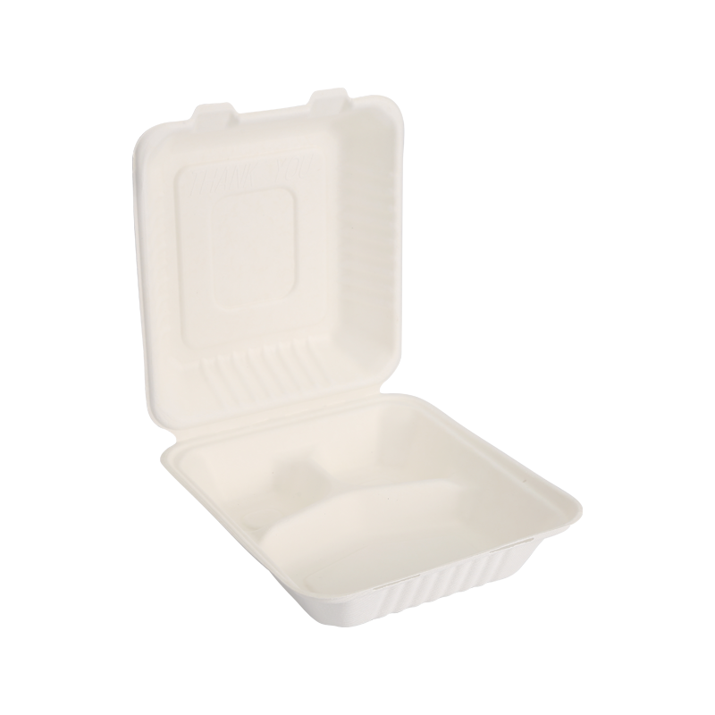首頁 / 產品 / 甘蔗渣食品容器 / 可降解8" x 8" 3 格翻蓋
