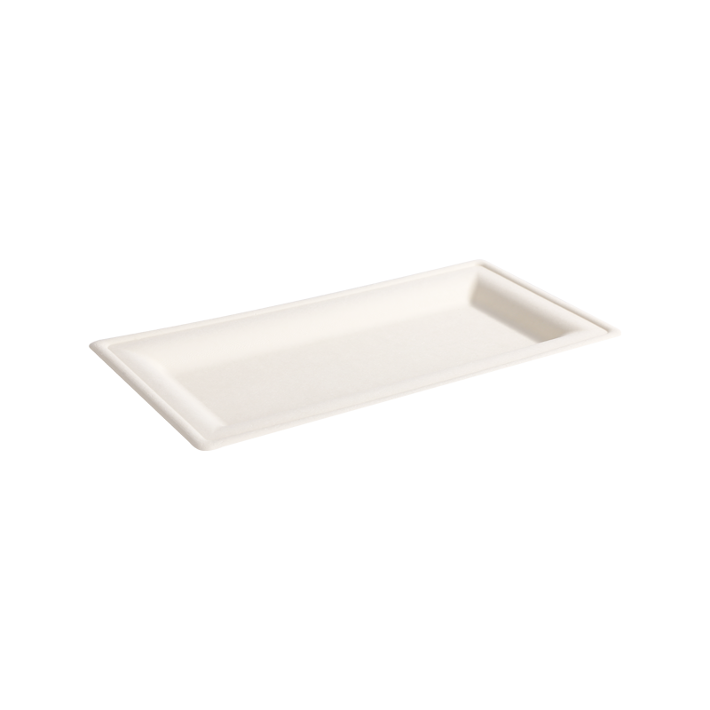 這個長方形托盤是由100%甘蔗制成的,它是100%可生物降解的,它來自自然,也可以回歸自然。